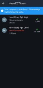 Ook van onze groep zijn er al een aantal mensen actief met Meshtastic en Meshcore. De activiteiten zijn vooral op Meshcore en hier naast zie je 2 screenshots van het gebruik.